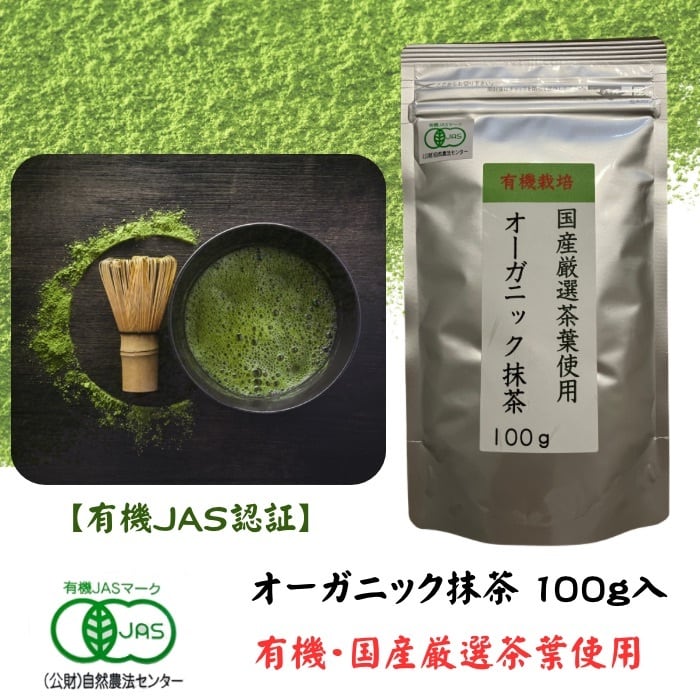 【有機JAS認証】 オーガニック 抹茶 100g 国産 有機栽培 抹茶パウダー 粉末 無添加 日本茶 厳選茶葉 お稽古 お菓子作り 料理用 製菓用 卸値価格 送料無料 荻野商店