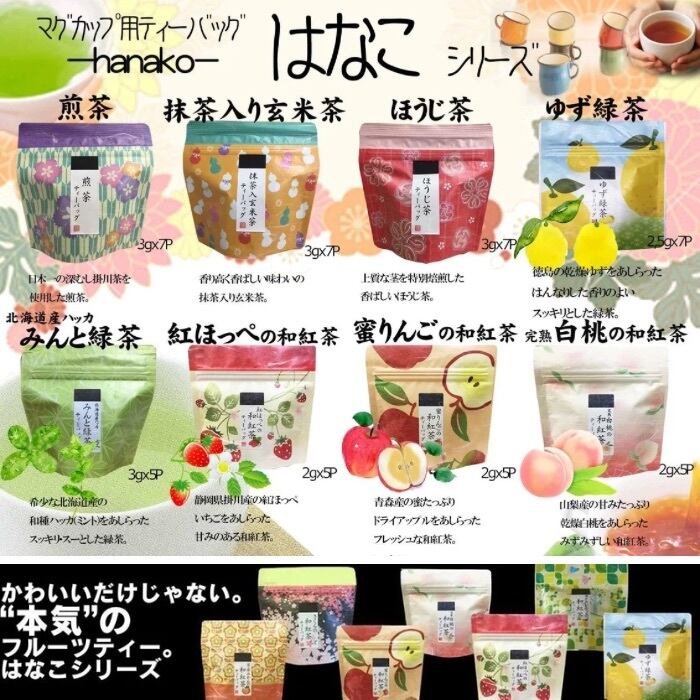 シトラス緑茶 2.5g×5個入り マグカップ用ヒモ付きティーバッグ はなこシリーズ フルーツティー 荻野商店